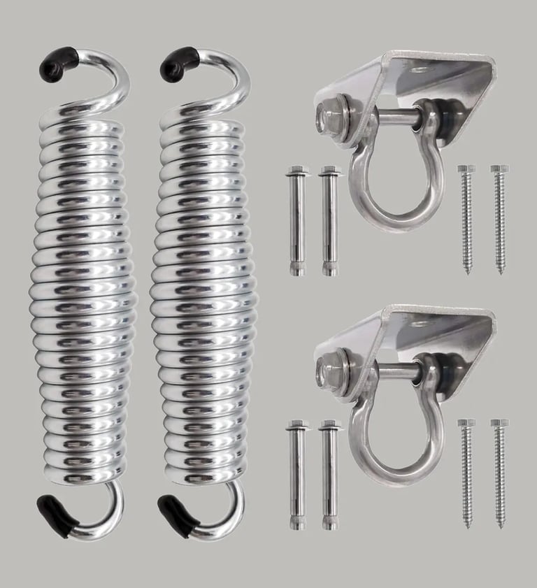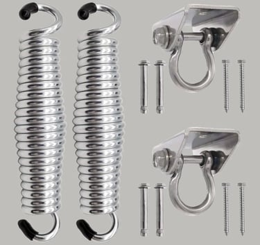 Most of our hammocks and swings come with all the essential hardware included — everything you need for a secure, hassle-free installation. For an even more comfortable and stable experience, we also offer premium hardware upgrades like heavy-duty springs, wall mounts, and adjustable connectors. Find them all in our official online store.