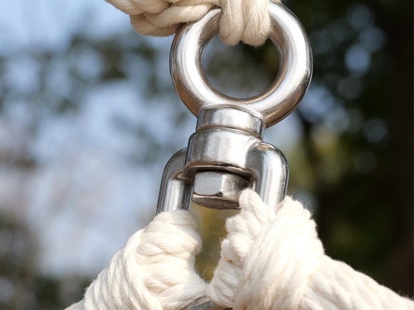 Fabric hammocks and chairs use Sunbrella® outdoor fabric, combined with Saniwerke’s signature interlaced stitching method—where ropes and fabric are woven together for a smooth, strong, and integrated finish.